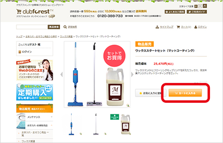 クラブフォレスト オンラインショップにて購入したい商品をカートに入れる