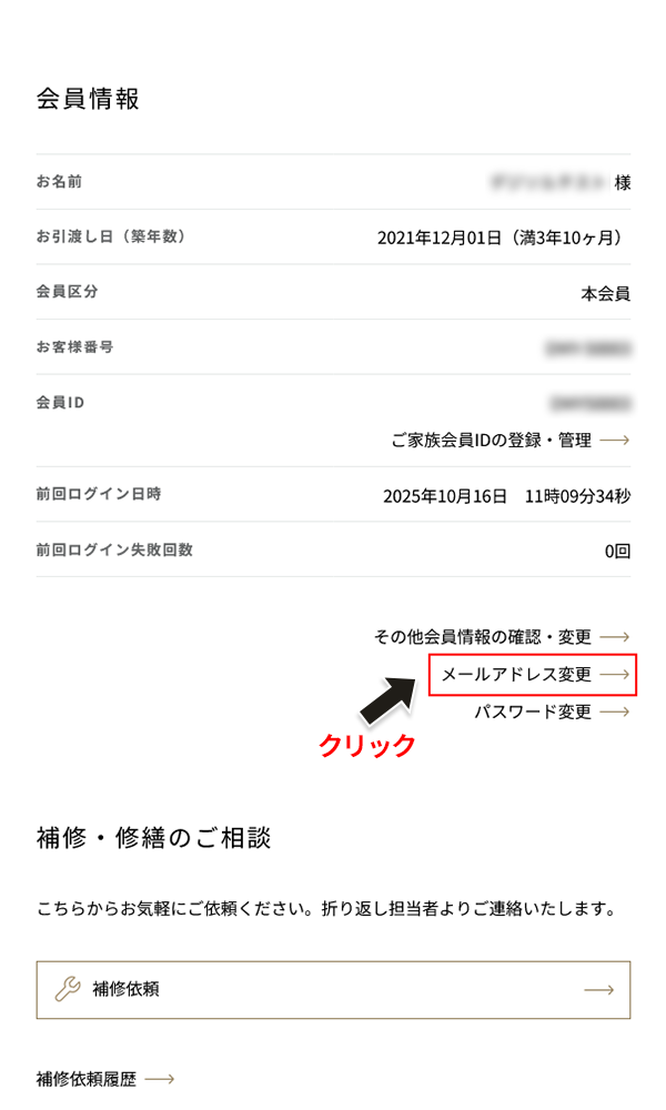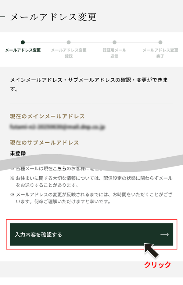 下記画面に遷移しますので、お客様情報のメールアドレスのご確認・変更を行ってください。