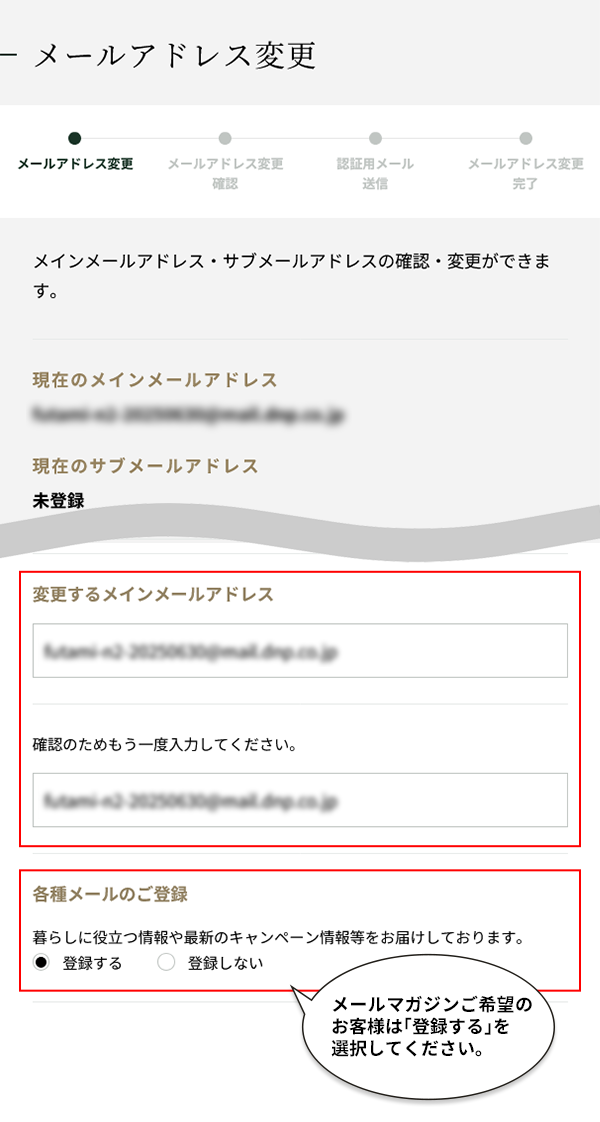 ご登録情報(メールアドレス)の確認・変更について