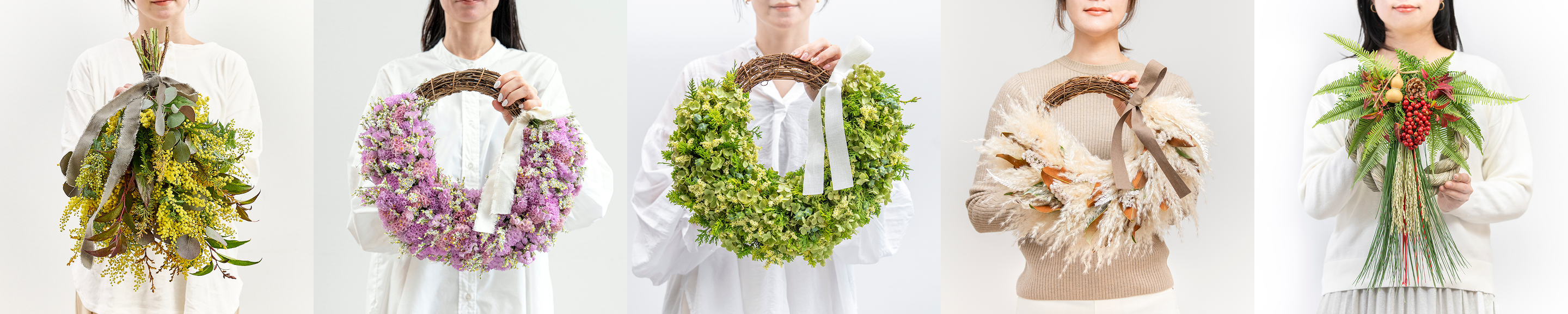 四季を感じるリースやスワッグ、ミニツリー、お正月飾りなど、季節の移ろいを愉しむインテリアアイテムを販売。